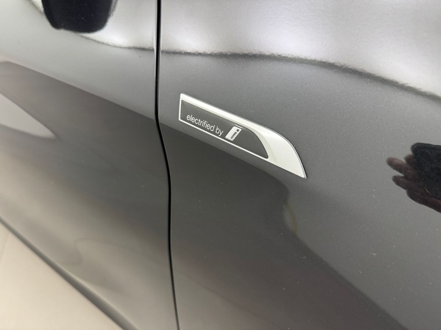 Trappe de recharge electrique cote conducteur avec badge "electrified by i" et signal lumineux de l'etat de charge