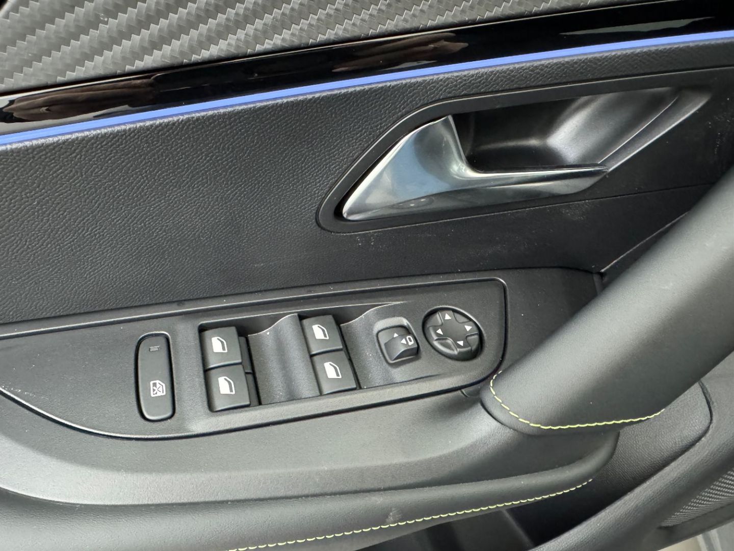 Elements de style interieur: planche de bord moussee avec double surpiqures adamite/tramontane et baguette noir brillant avec jonc chrome et jonc lumineux, panneaux de portes AV avec decor carbone et baguette noir brillant et jonc lumineux (8 couleur