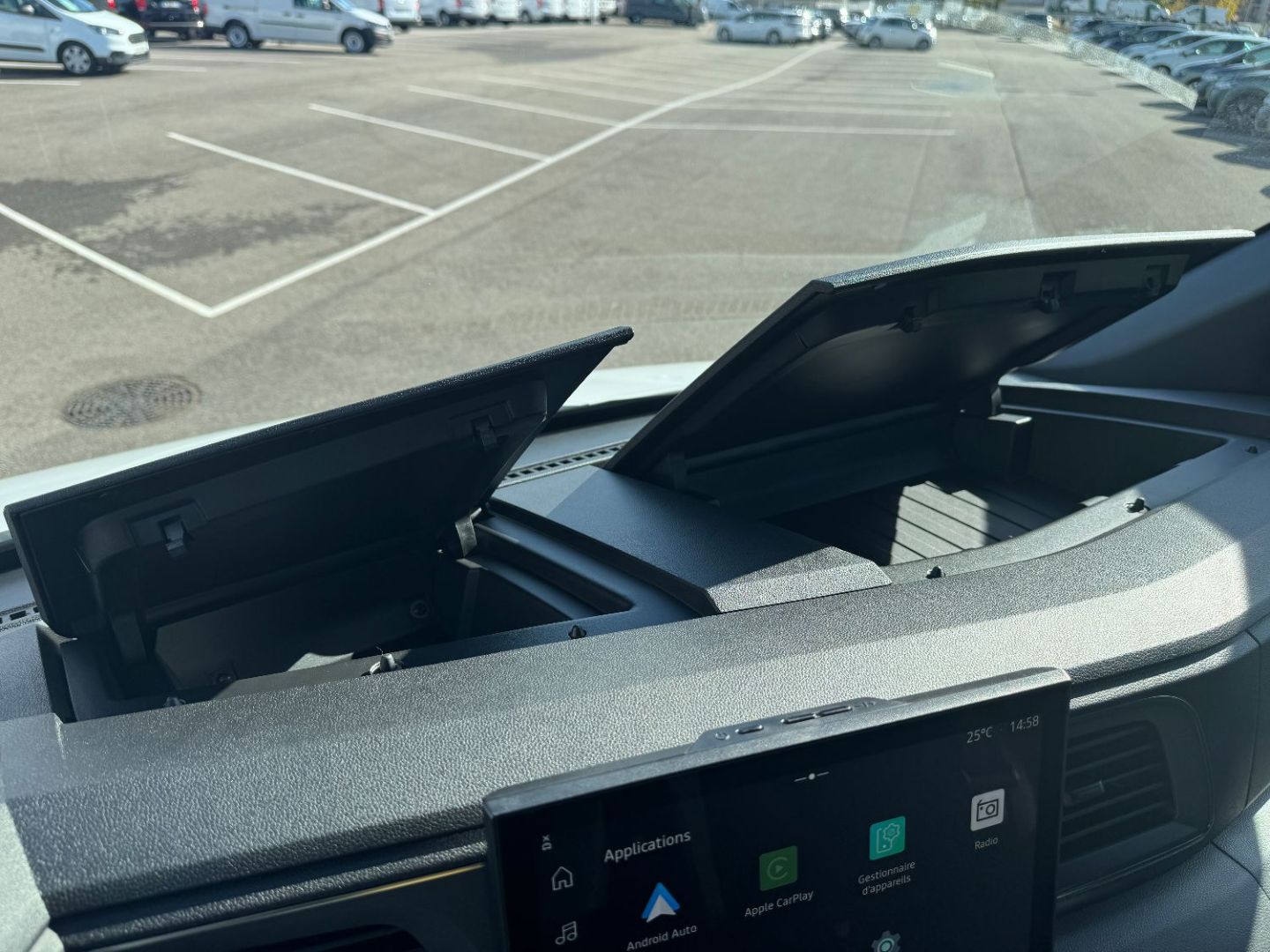 Planche de bord avec rangements ouverts