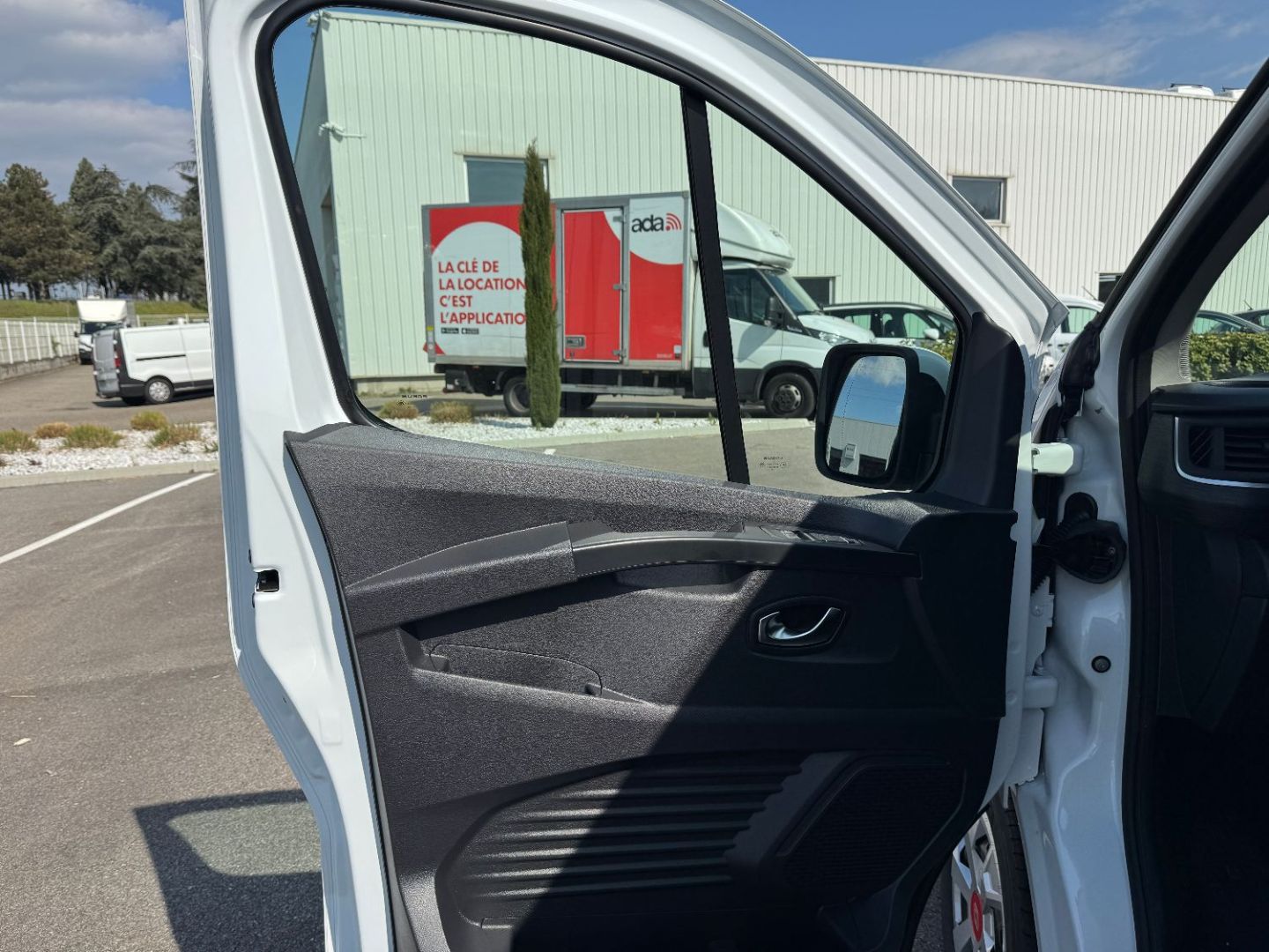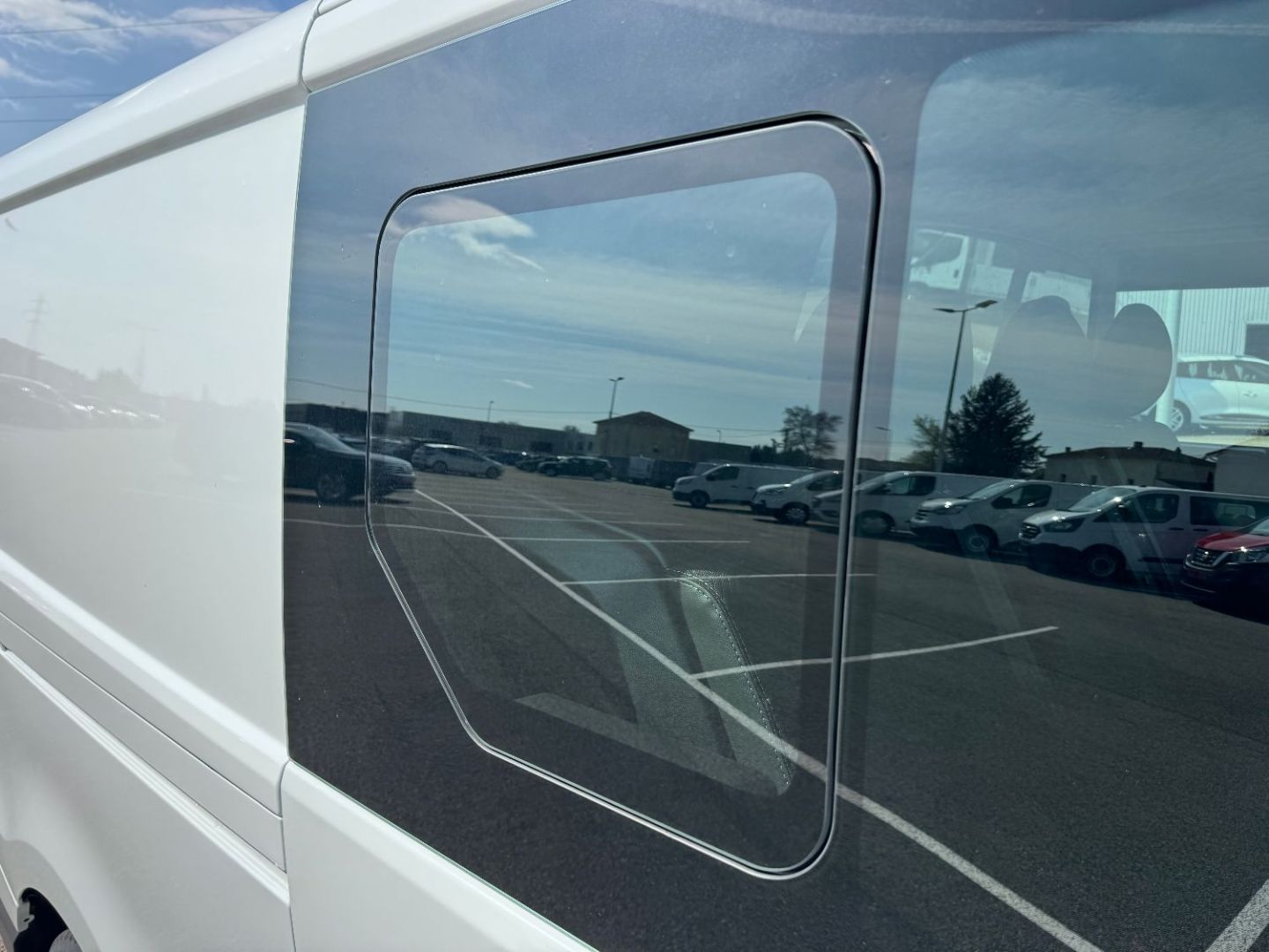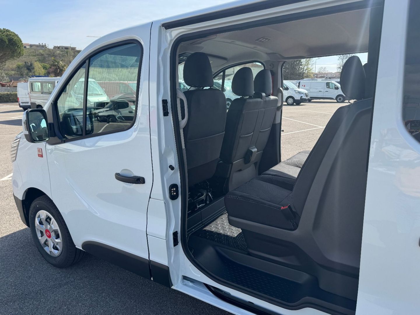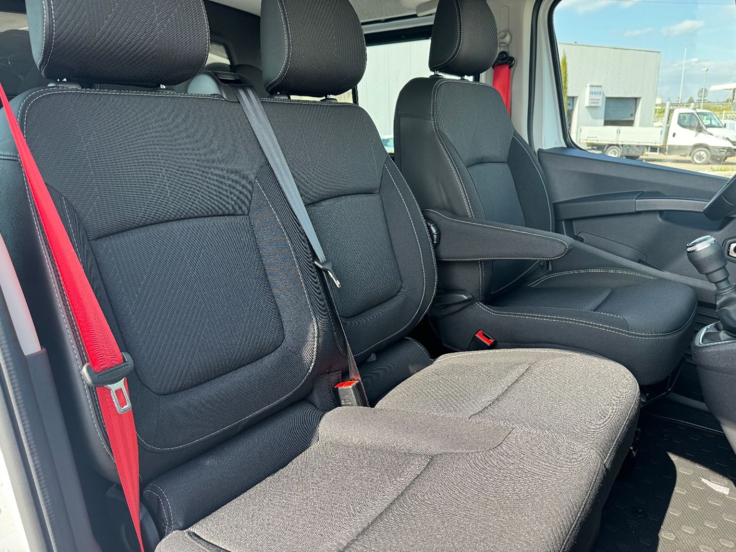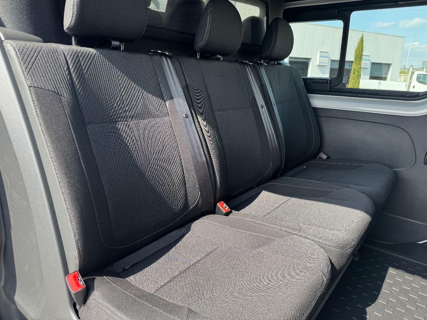 Porte laterale gauche vitre ouvrante - banquette passager AV 2 places avec rangement sous banquette, dossier fixe